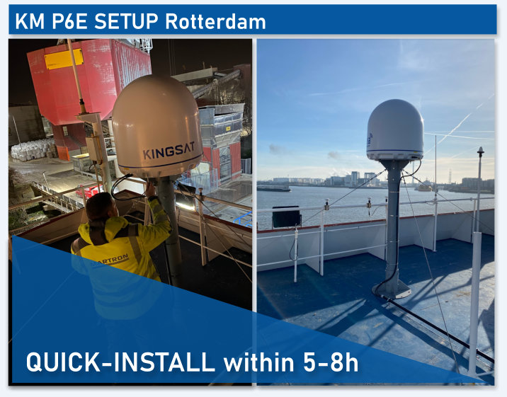 We installed again one of our P6E VSAT ANTENNA on board. Together with a LTE backup system and integrated routing.